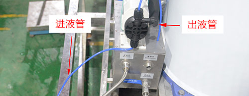 至3噸加鹽500克,再將鹽水桶加滿水并攪勻,然后將鹽水泵進液管放進鹽水桶。